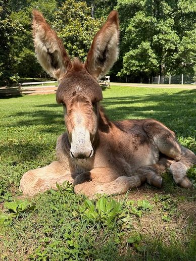 Buddy was born on May 30, 2024. He is an endangered Mammoth Donkey who lights up the faces and hearts of all that meet him. He came to the rescue from a loving family that felt he would thrive better with us at our rescue. His momma is Zoe. Buddy will be used for events and one of the greeters here at the farm.
