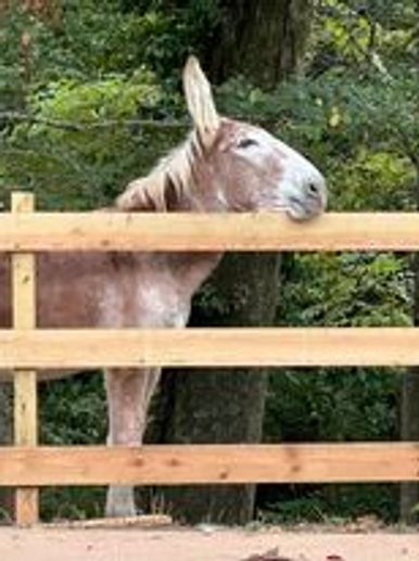 Jasper is our THERAPY Donkey. He visits assisted living facilities, nursing homes, Elementary Schools and goes to events. He's always the life of the party and loves to be loved on.